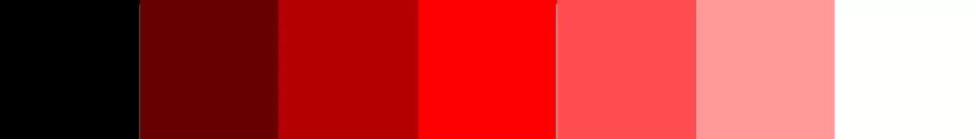 明亮度,就是颜色的亮度。明亮度越高,颜色越亮,直观看来就是会变得越白,反之颜色就越来越黑。下图中间是纯红色,然后从左到右分别是明亮度-100、-60、-30、0、30、60和100,我们发现-100就是纯黑,而100则是纯白。