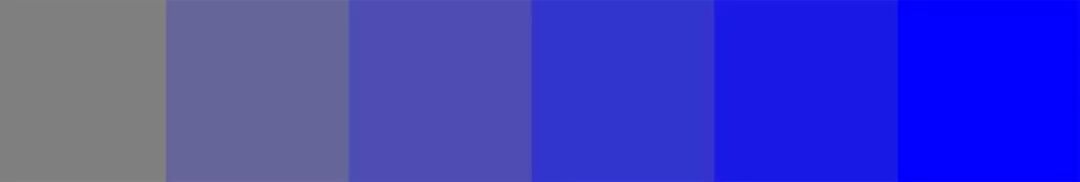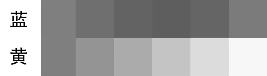 这个参数是用来调整色彩强度的:颜色是鲜艳还是暗淡。该参数不会更改色调。比如下图是一个纯蓝色(最右)饱和度以-20的梯度较低,一直到-100的灰色(最左)。你会发现颜色给人的视觉冲击力是不同的,颜色越纯越“刺眼”。这就是为什么饱和度低的,甚至是黑白的照片,会让我们更重视质感、明暗——因为颜色的干扰减少了。再来看一组黄色的,你会发现一个问题,貌似……这些颜色饱和度变化以后,亮度也变了呀!你的感觉是对的。
