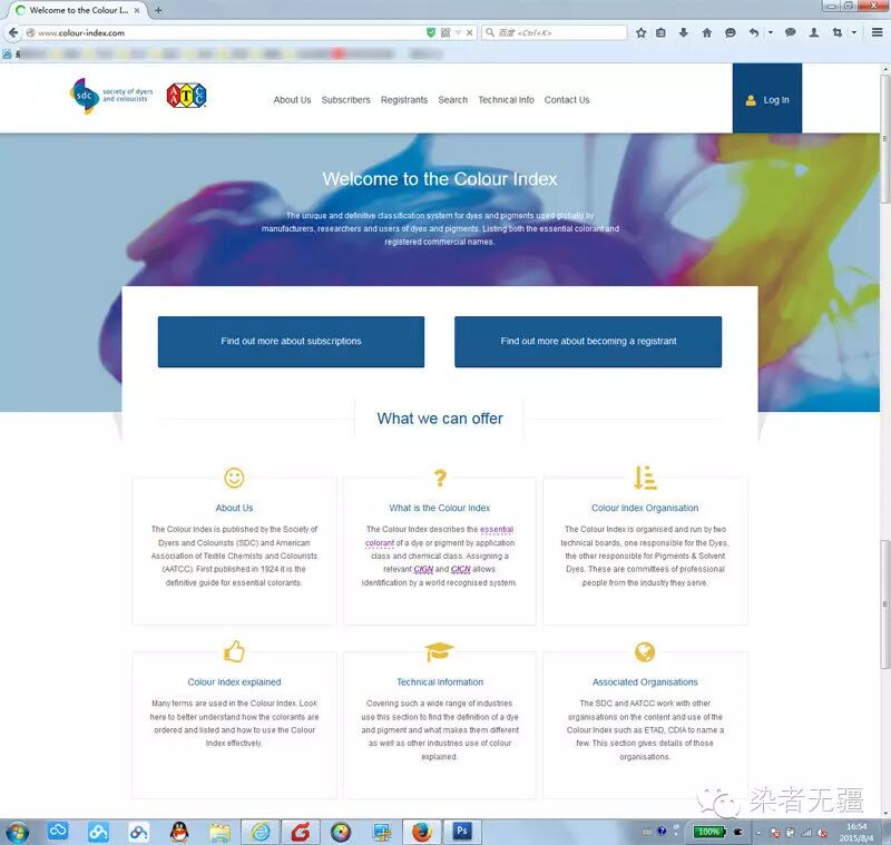 网络版的染料索引又称为在线数据库,该数据库得到了全球范围内颜色行业的公司和科研院所的大力合作。